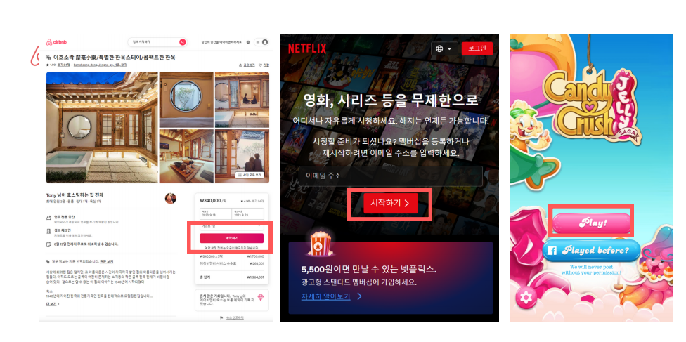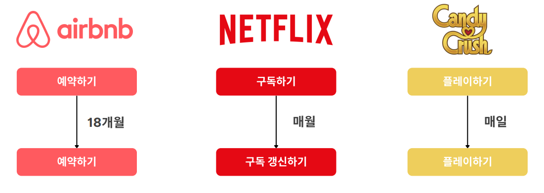 ์ฆ '๋ชฉ๋ก์ ์กฐํํ๋ ํ์์ ๋ฐ๋ณต'์ ์ฌ์ฉ์ ์ ์ง ์ธก๋ฉด์์๋ ์ ์๋ฏธํ์ง๋ง ๋น์ฆ๋์ค ์ธก๋ฉด์์๋ ๋ฌด์๋ฏธํ ์งํ๋ค. ์ฃผ์ ์ด๋ฒคํธ๋ ์ด ๋ ๊ฐ์ง ์ธก๋ฉด์ ๋ชจ๋ ๋ง์กฑํ๋ ์ก์ ํน์ ์ด๋ฒคํธ๋ก ์ง์ ๋ผ์ผ ํ๋ค. ๊ทธ๋ฐ ๋ถ๋ถ์์ ์์ด๋น์ค๋น์ ์ฃผ์ ์ด๋ฒคํธ๋ '์์ฝํ๊ธฐ'๋ก, ๋ทํ๋ฆญ์ค์ ์ฃผ์ ์ด๋ฒคํธ๋ '๊ตฌ๋ ํ๊ธฐ'๋ก ๋ณผ ์ ์์ ๊ฒ์ด๋ค. ์บ๋ํฌ๋ฌ์ ๊ฐ์ ๊ฒ์์ ๊ฒฝ์ฐ 'ํ๋ ์ดํ๊ธฐ' ๊ฒ ๊ณ .
